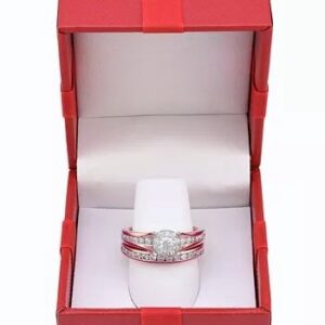 This beautiful ring for her showcases an elegant emerald-cut aquamarine at the center, surrounded by sparkling frames of round and baguette-cut white sapphires. Gorgeous pear-shaped London Blue topaz gemstones flank each side, and more round-cut white sapphires shimmer down the band to finish the look. The ring is crafted in classic sterling silver.