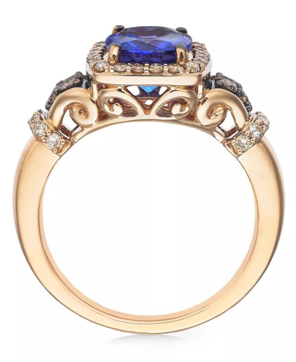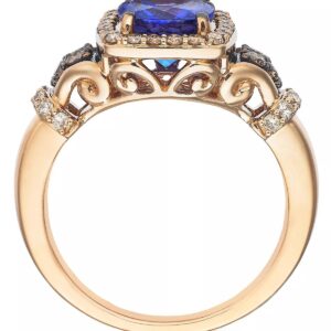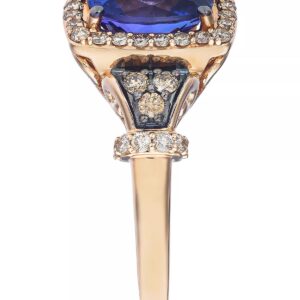 A striking cushion-cut Blueberry Tanzanite? (2 ct. t.w.) makes a cool contrast to the warm tones of Nude? (1/3 ct. t.w.) and Chocolate Diamonds? (1/8 ct. t.w.) set in rich 14k Strawberry Gold?