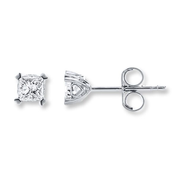 Easily dressed up or down, these solitaire earrings featuring dazzling princess-cut diamonds are sure to get plenty of wear. Crafted in 14K white gold, the earrings have a total diamond weight of 1/4 carat. Friction backs keep the earrings secured.