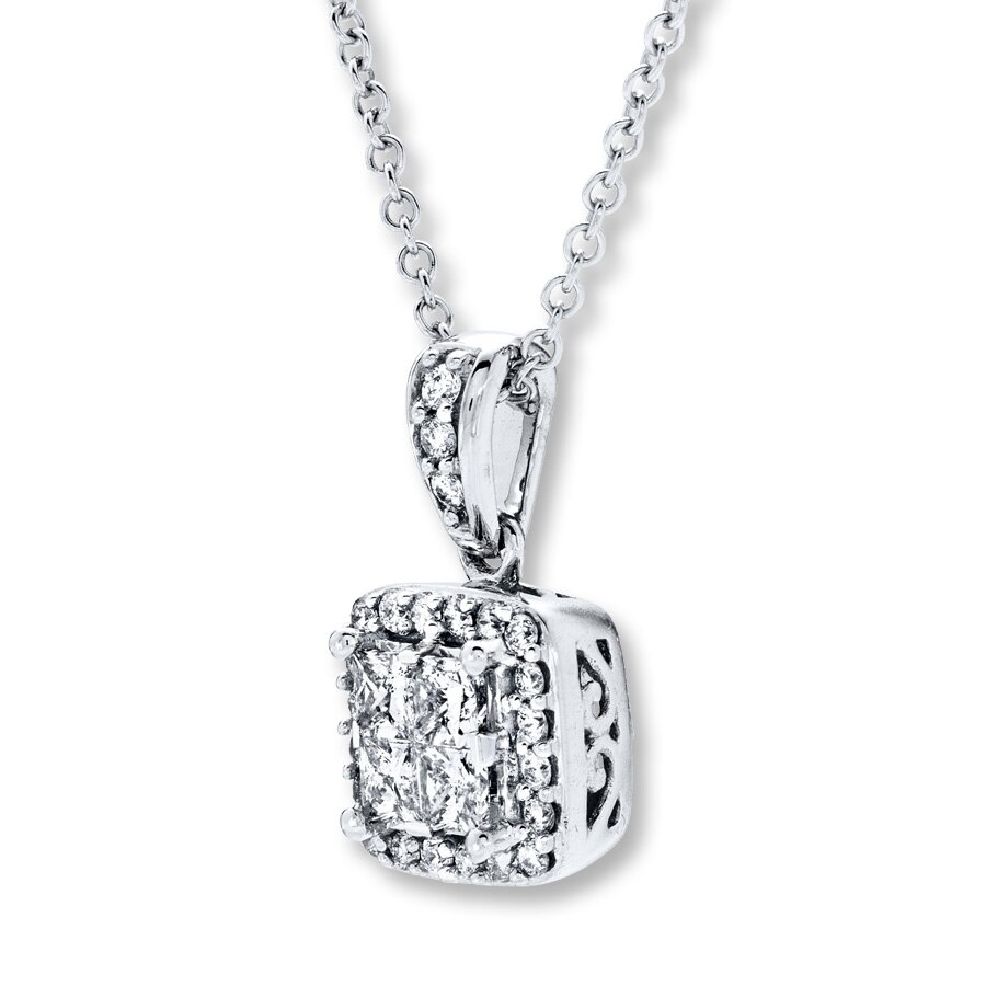 Diamond Necklace 1/2 ct tw Princess-cut/Round 14K White Gold