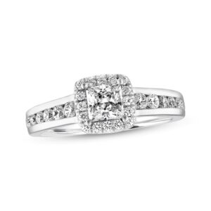 With sparkling round diamonds totaling 1/2 carat in weight, this wedding band is a wonderful way to symbolize your commitment. The 14K white gold ring is designed to accompany her matching engagement ring (sold separately).