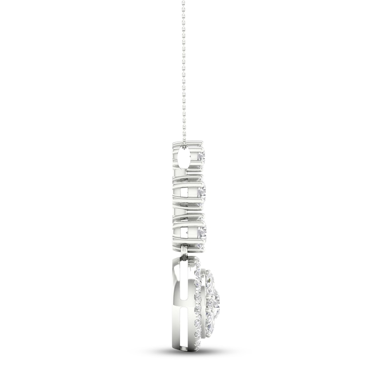 Multi-Diamond Drop Necklace 2 ct tw Round & Marquise-cut 14K White Gold 18″